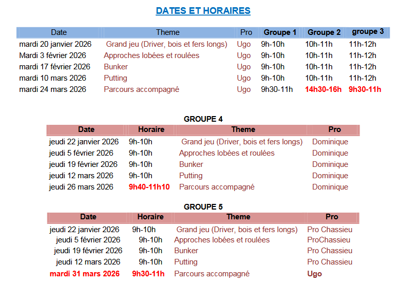 Ces efforts ne suffiront pas; aussi nous vous recommandons de prendre une ou deux fois par mois, par petits groupes (2 à 3) des cours avec un des pros de Chassieu ou d’ailleurs.