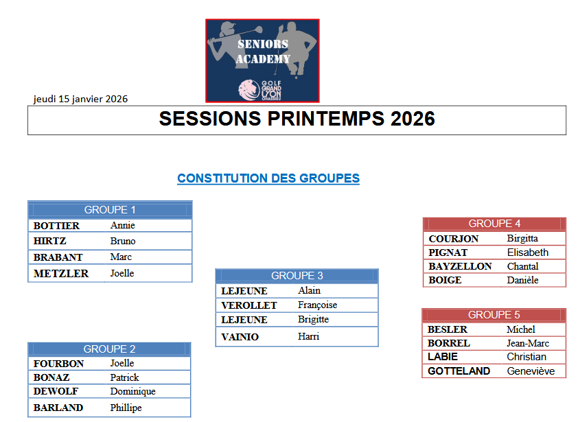 D’autres activités liées à l’amélioration du swing et/ou la condition physique, ciblant les séniors seront misent en place progressivement. Vos suggestions seront les bienvenues.